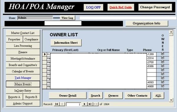 Track homeowners association Owners/Contacts/Vendors/Properties