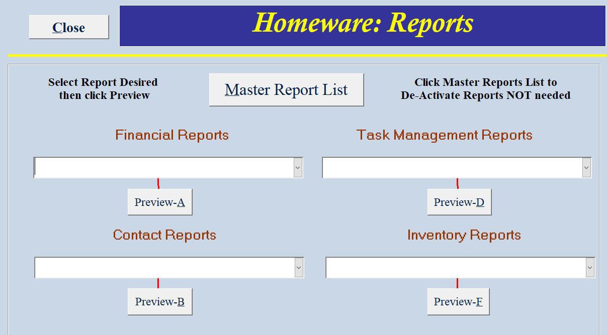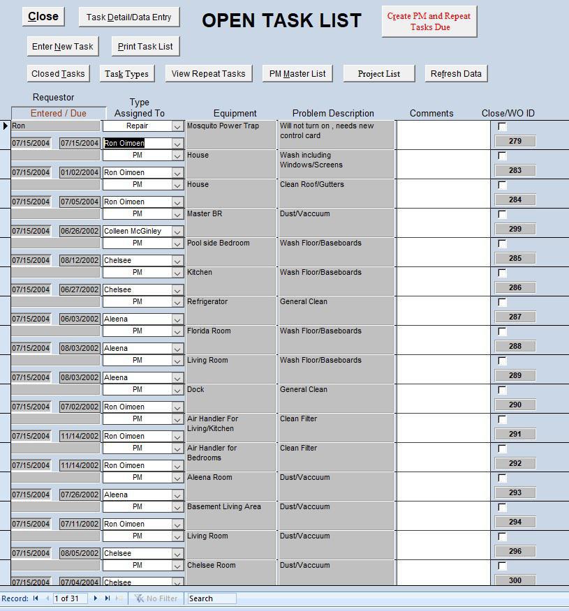 View forms used throughout the program