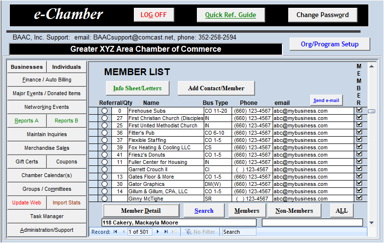 Contacts for Chamber of Commerce (Members/Propspects/Businesses/Individuals)